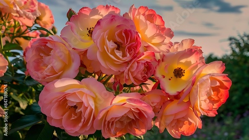 Delicate flowers of a bet figueras rose bush at the afternoon
