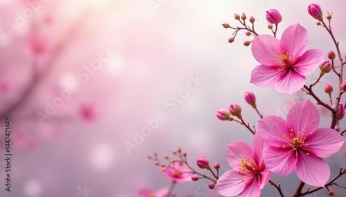 Delicate fuchsia floral motif, swirling vines and buds, soft focus , buds, style, delicate