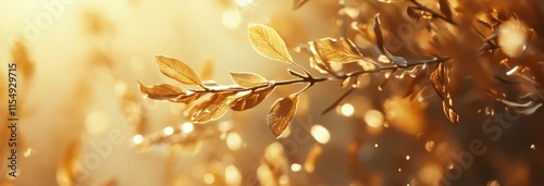 Delicate Golden Leaves Glowing in the Warm Autumn Light with Soft Bokeh Background Creating a Serene and Inviting Atmosphere of Nature’s Beauty
