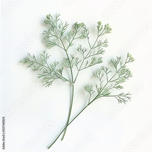 Delicate Green Chervil Herb against a Crisp White Backdrop