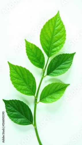 Delicate green leaves isolated on white background, nature, closeup, green leaf