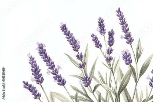 Delicate lavender stems with vibrant purple blossoms create a captivating vintage botanical illustration on a clean white background