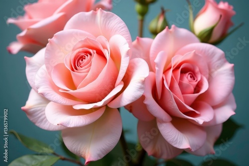Delicate, overlapping roses in soft pastel shades, rose background, print