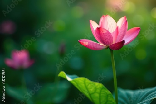 Delicate petals unfolding from a slender stem amidst lush greenery , peaceful, serene landscape, solitude