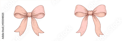 Delicate pink bows designed for decorations, crafts, or gifts, showcasing intricate details with flowing ribbons in a soft aesthetic