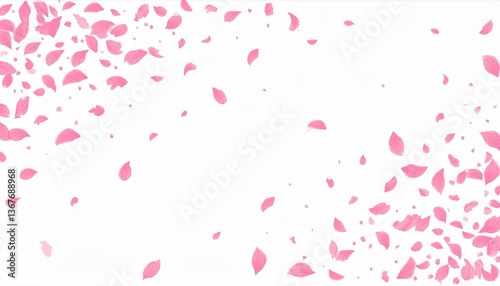 delicate pink cherry blossom petals falling on a white background, soft floral texture for romantic design and spring themes