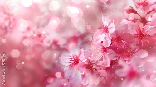 Delicate Pink Cherry Blossoms with Sparkling Bokeh Background