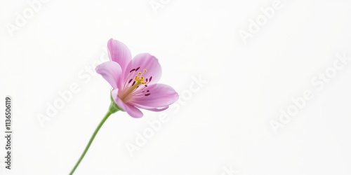 Delicate Pink Flower on a White Background, a Botanical Study of Simple Elegance