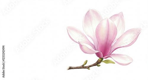 magnolia, blossom, pink, flower, watercolor, painting, floral, illustration, botanical, art, spring, nature, plant, bloom, delicate, soft, pretty, elegant, romantic, white background, isolated, closeup, macro, design, texture, background, image