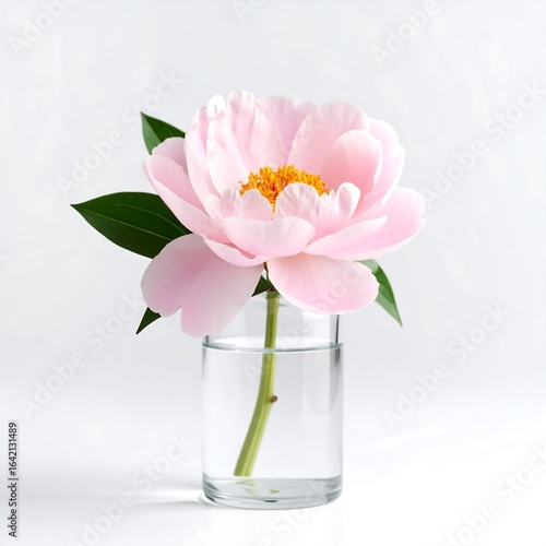 Delicate pink peony in clear vase