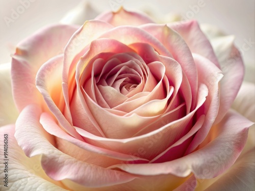 Delicate pink rose petals unfurl in a soft, romantic gesture, with intricate texture and fragile edges, against a gentle, creamy white background.