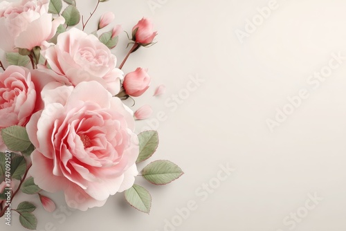 pink, rose, floral, bouquet, flower, nature, beautiful, delicate, elegant, romance, love, wedding, celebration, anniversary, mother's day, february 14, greeting card, invitation, background, copy space, soft, pastel, gentle, reddening, leaf, green, fresh, blooming, blossom, spring, summer, garden, natural, plant, design, element, template, banner, texture, wallpaper, render, illustration, aesthetic, serene, peaceful, event, greeting