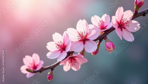 Delicate pink sakura blossoms, soft petals, gentle branches , japanese, art, cherry blossom