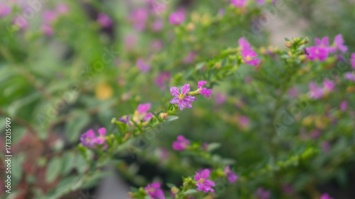 Delicate Purple False Heather Flowers in Bloom with Green Foliage