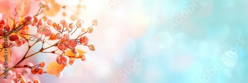 Delicate red flowers on a blurred colorful background, showcasing nature's beauty and serenity in a soft focus setting.