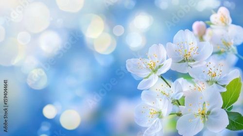 blossom, spring, flower, white, blue, bokeh, soft, delicate, nature, beautiful, floral, tender, pastel, light, gentle, springtime, image, background, photo, blur, sharpened, detail, branch, leaf, flower petals, closeup, fresh, purity, innocence, beauty, softness, colours, shine, blurry, outdoors, elegant, romantic, pretty, peaceful