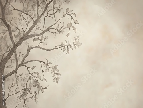 tree, tree branch, leaf, light, background, delicate, sparse, nature, art, drawing, vignetting, crayons, beige, cream, subtile, tranquil, serene, peaceful, calm, quiet, soft, gentle, minimalist, simple, elegant, graceful, organic, natural, botanical, illustration, design, pattern, texture, abstract, muted, pale, colours, tone, shade, hue, monochrome