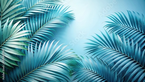 delicate, tropical palm fronds in soft blue hues amidst a natural botanical setting, greenery, tones, greenery