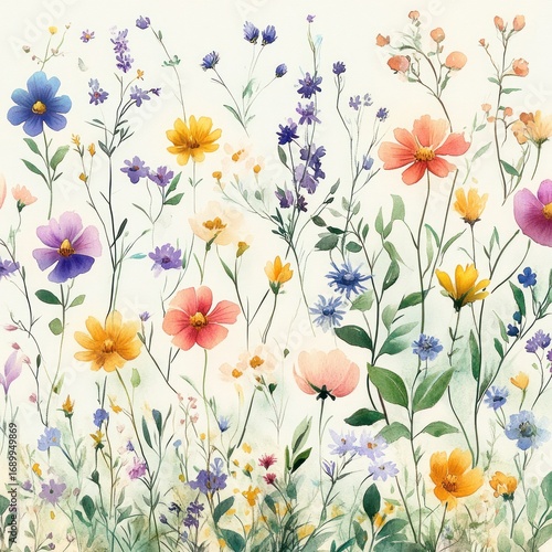 flower, wildflower, watercolor, colourful, delicate, purple, yellow, orange, blue, green, stem, leaf, botanical, natural, floral, garden, spring, summer, plant, blossom, artwork, pastel, bright, fresh, beautiful, nature, ornamental, decorative, hand-painted, illustration, background, freshness, growth, bloom, vibrant, light, delightful, organic, natural beauty, springtime, flora, soft, gentle