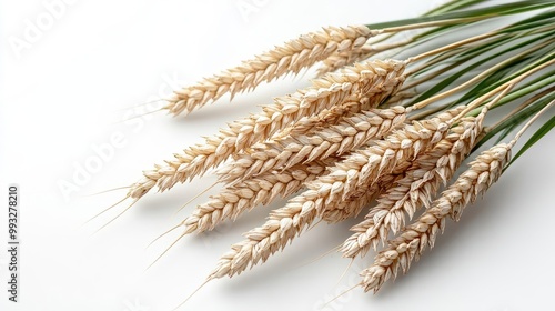 delicate wheat ears elegantly displayed against a stark white background showcasing the natural beauty and simplicity of agricultural produce in a minimalist style