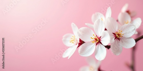 Delicate white blossoms on a soft pink backdrop, delicate, sweet