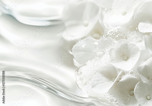 flower, hydrangea, white, water, bubble, nature, beauty, cleanliness, floral, plant, fresh, still life, smooth, elegant, soft, hygiene, relaxation, aesthetic, detail, macro, photo, art, still, composition, peace, calm, texture, modern, minimalist, trend, inspiration