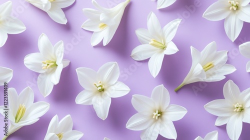 Delicate White Lilies on a Lavender Background: A Floral Arrangement