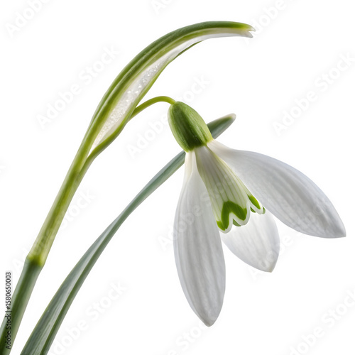 snowdrop, flower, white, green, spring, nature, botanical, bloom, leaf, plant, fragile, delicate, isolated, cut-out, transparent, background, single, macro, detail, flora, seasonal, first, herald, of, garden, wildflower, beauty, fresh, organic, growth, new, life, blossom, flower, season, lily, bud, winter, snowdrop, floral, closeup, colours, snow
