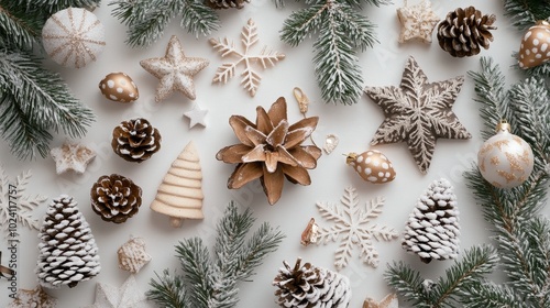 winter, decoration, holiday, pine cone, snowflake, star, ornament, festive, cosy, celebration, christmas, seasonal, arrangement, nature, home, decor, greenery, accessory, rustic, texture, design, pattern, warmth, joy, craft, craft, table, setting, gift, coniferous, snowy, gold, spirit, cheerful, bricolage