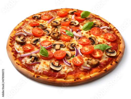 Deliciose vegetarian pizza with vegetables isolated on white background