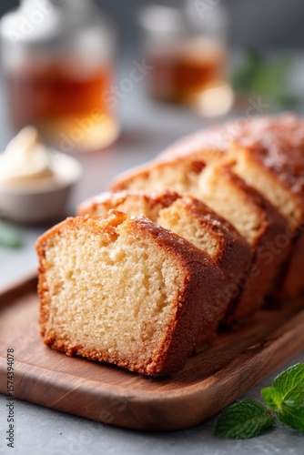 Delicious amarula cake slices displayed on a wooden board with a rustic touch