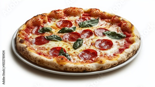 Delicious and Realistic Neapolitan Pizza Isolated on White Background for Product Photography