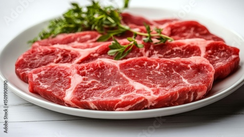 Delicious and Succulent Ribeye Steaks on a Pristine Plate, Perfect for Hearty Dishes and Grilling