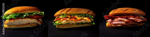 Delicious Assortment of Gourmet Sandwiches on Black Background