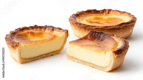 Delicious Baked Cheese Tarts on White Background cheese tart baked dessert pastry custard cut slice