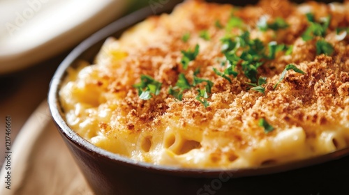 Delicious baked macaroni and cheese with crispy breadcrumb topping for comfort food lovers