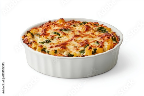 pasta, rigatoni, dish, spinach, mozzarella, parmesan, cheese, baked, casserole, food, delicious, meal, dinner, lunch, tasty, italian, cookery, fresh, homemade, oven, cooked, receipe, white, preparation, gastronomy, ingredient, culinary, background, nourishment, diet, vegetable, healthy, simple, comfort, rustic, style, serving, presentation, kitchen, epicure, photo, closeup, angle, studio, nobody, view, top