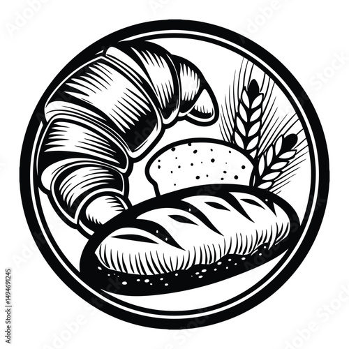 Delicious Bakery Goods Croissant, Bread, and Wheat Illustration