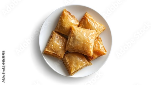 Delicious baklava on white plate: sweet dessert with crispy layers and honey glaze