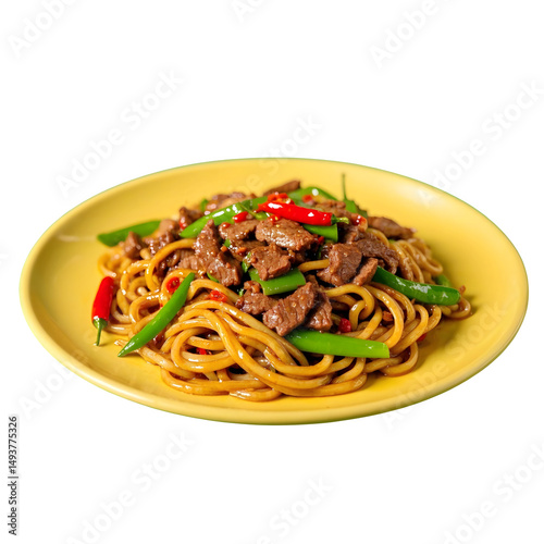 beef, noodle, stir, fries, green, pepper, chinese, food, asian, pasta, plate, photo, culinary, eatery, menu, delicious, tasty, dinner, lunch, spicey, transparent, background, isolated, high, resolution, cookery, dish, meal, main, course, receipe, ingredient, cooking