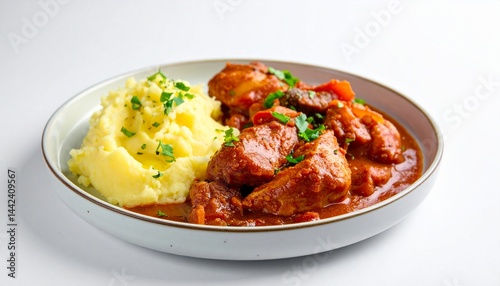 delicious beef stew with mashed potatoes, a hearty and comforting meal
