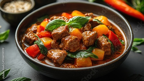 Delicious Beef Stew with Peppers Basil.