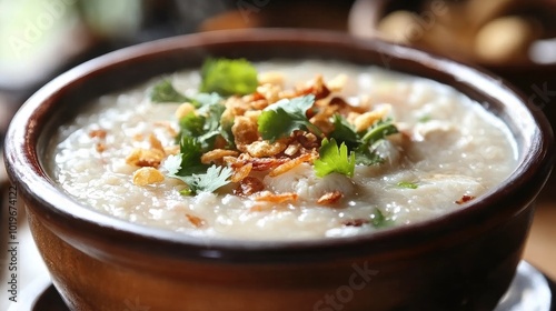 Delicious Bowl of Creamy Rice Porridge with Toppings