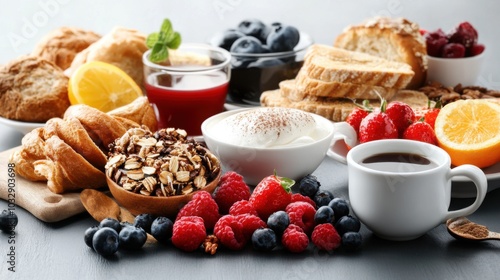 breakfast, food, healthy, table, clean, dining, fruit, berry, yogurt, granola, pastry, hot drink, toast, orange, raspberry, blueberry, lemon, jam, dessert, crockery, spoon, serving, freshness, meal, morning, treat, tasty, culinary, brunch, cafes, snack, delicious, nourishment, colourful, arrangement, vibrant, hospitality, wholesome, natural, receipe, homemade, tableware, cosy, inviting, aesthetic