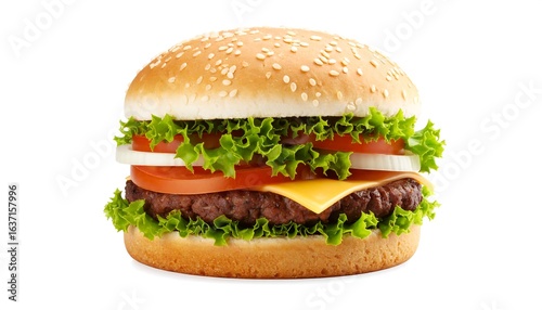 burger, food, hamburger, delicious, fresh, tasty, epicure, appetising, image, studio, shot, isolated, white, background, meat, cheese, lettuce, tomatoes, onion, bun, gold, brown, crispy, juicy, savoury, fast, american, classic, lunch, dinner, meal, snack, photo, closeup, detail, texture, quality, composition, product, presentation, receipe, concept, eatery, photo