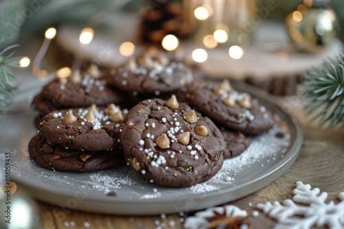 christmas, cookie, chocolate, chips, baking, holiday, treat, dessert, sweet, festive, food, photo, background, bokeh, sprinkle, sugar, chips, baked, good, homemade, plate, rustic, celebration, winter, december, tradition, delicious, tempting, epicure, indulgence, bakery, warm, cosy, light, decoration, pine, needle, snowflake, star, anise, wood, table, close, up, selective, sharpened, nobody, snack, confectionery