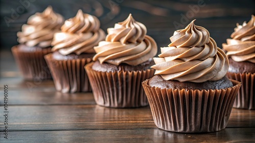 Delicious chocolate cupcakes with swirls of cream and chocolate ganache