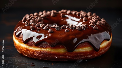 Delicious Chocolate Glazed Donut Topped with Chocolate Chips