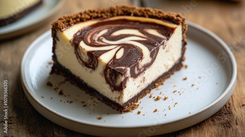 Delicious Chocolate Swirl Cheesecake Slice on Graham Cracker Crust