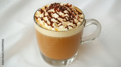 Delicious Creamy Coffee Whipped Cream Chocolate Drizzle Glass Mug